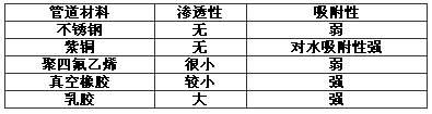 不同材料的管道對氣體和水的滲透、吸附能力見表10。